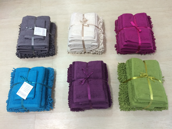 Riba manufactures coordinated Tufted Bath Mats and Towel Sets packaged with ribbon and inlay cards for our discerning customers. The sets can be in plain quantities or in yarn dyed jacquards as per requirements and the Towel / Bath Mat sizes can be adjusted to match the buyer specific requirements